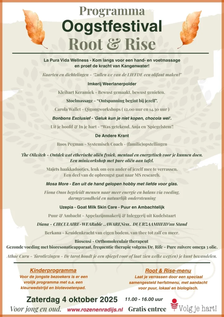 Zaterdag 6 oktober staan Anja en ik weer (zie ook het bericht van 29 maart) bij ‘Rozen & Radijs’! Dit keer op het ‘Oogstfestival’. Je bent weer van Harte Welkom!
